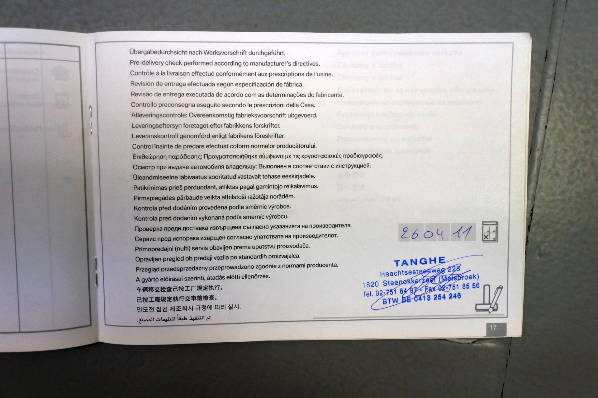 - Onderhoudsboekje (fysiek)