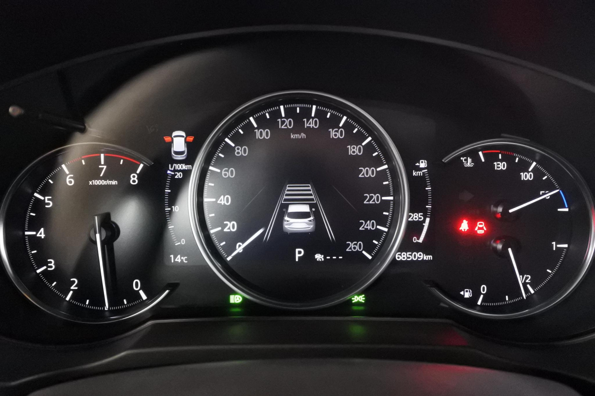 - Mazda Radar Cruise Control (MRCC): houdt ingestelde snelheid aan en bewaart gewenste afstand tot voorganger (incl. stop & go-functie)