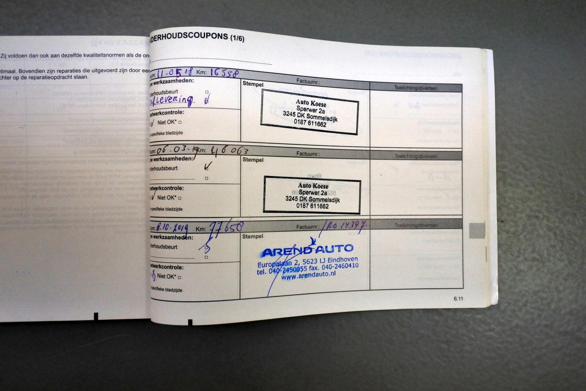 - Onderhoudsboekje aanwezig?
